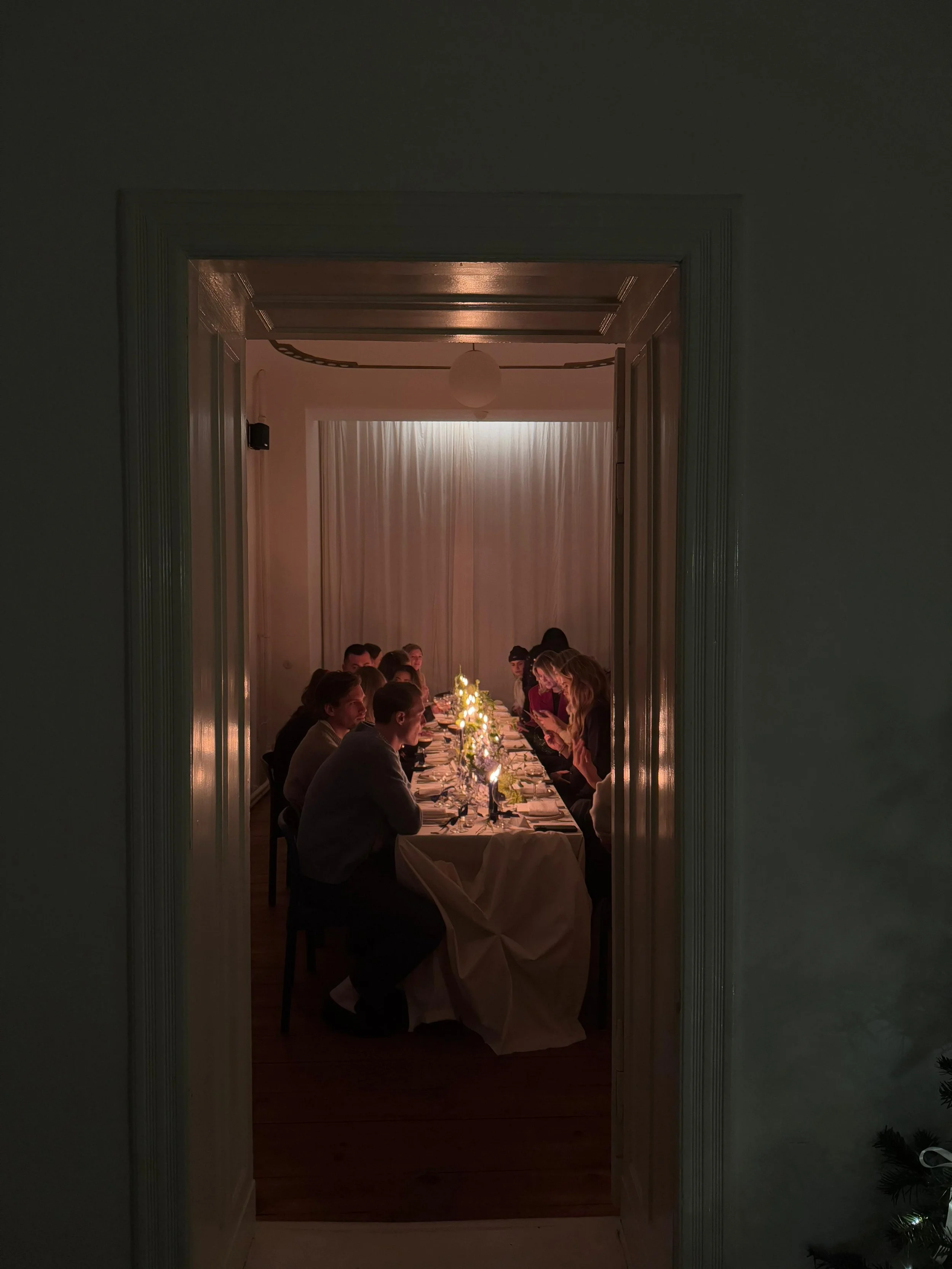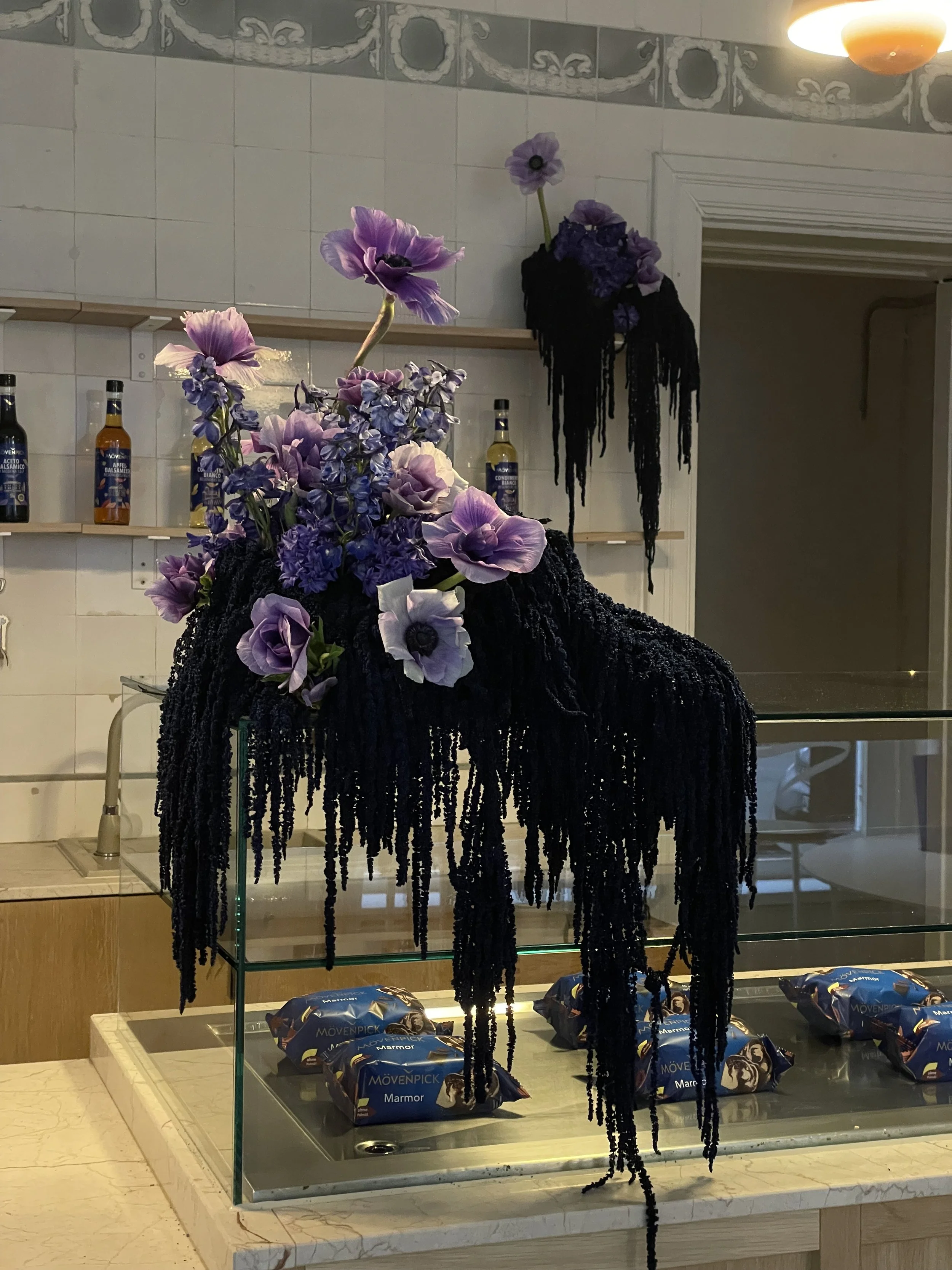 A cozy Christmas-themed event design for Mövenpick's first influencer gathering, featuring abundant candlelight and sophisticated floral arrangements in deep blue and fresh green tones. Each table showcased unique material combinations that invited guests to discover new textures and details throughout the evening. Blue amaranthus created a distinctive dripping wax effect that added warmth and festive ambiance to the setting. The design balanced intimate lighting with rich botanical elements, creating an inviting atmosphere that encouraged exploration and conversation. The arrangements complemented the brand's refined aesthetic while embracing the seasonal spirit, transforming the venue into a memorable Christmas celebration that felt both luxurious and welcoming.